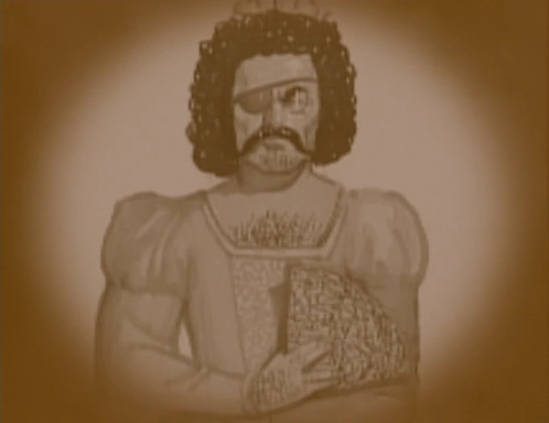 Steps of KnowledgeOne of the fiercest, meanest pirates of them all was Bluebeard. A retired British army officer, in 1717, he turned pirate and became famous all along the coast of America for sacking and burning ships, but his most dreadful invention of all was making folks walk the plank. Eventually the navy captured Bluebeard and sentenced him to hang. Legend has it that one night, a strange-looking woman appeared at the jail. "Yoo-hoo, Mr. Jailer! I'm Bluebeard's sister, and I want to pay him a visit!" The "woman" wasn't a woman at all, but One-Eyed Jack, Bluebeard's toothless and bloodthirsty first mate. "What took ya so long, ya landlubbin' varmint?" "I couldn't walk fast… *cough* These blasted shoes are pinching my feet…" "Quick! Let's change clothes and tomorrow I'll be back with the whole crew to rescue ye." They swapped clothes, and Bluebeard, pretending to be his own sister, slipped out of the jail. Unfortunately, Bluebeard never returned, and One-Eyed Jack was jailed so long he grew old and had to wear a bifocal monocle. Years later, his monocle was brought to the Temple.