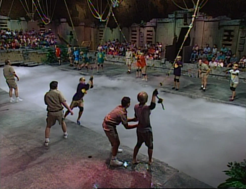 The Broken Wing of Icarus is the 78th episode of Legends of the Hidden Temple. It was the 52nd episode to be aired. Moat CrossingThe Moat for the last production day of Season 2 was a simple one; players just had to swing on a rope to get across. The Silver Snakes got their first teammate across the fastest, and also rang their gong first. Very soon after, the Green Monkeys, Purple Parrots and Red Jaguars locked into second, third and fourth place respectively.